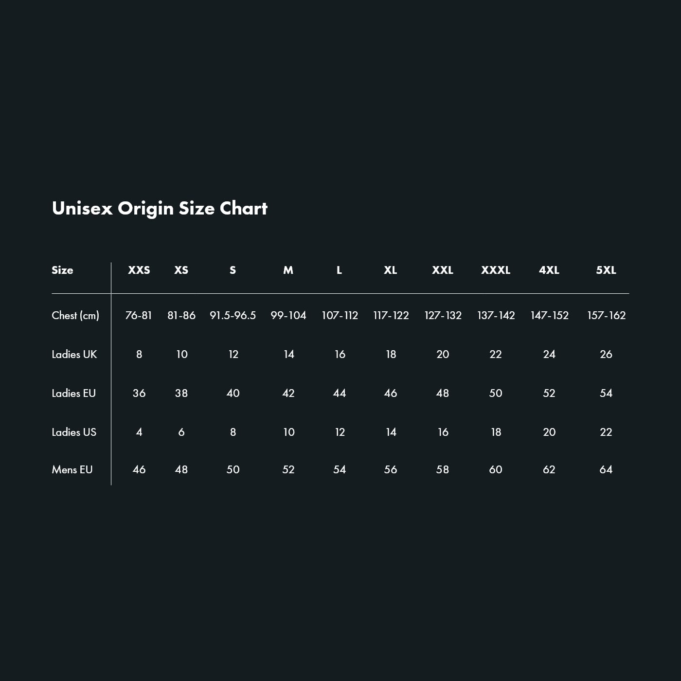 Origin is a unisex product. If wearing over bulky layers or if you are between sizes, we recommend sizing up.